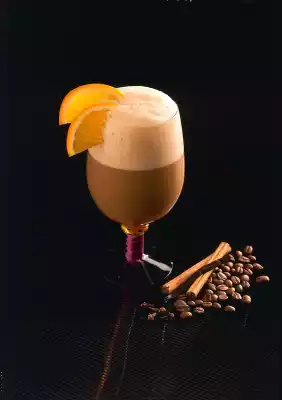 Cut the vanilla pod lengthwise and scrape out the pulp. Add the vanilla pod and pulp, cinnamon stick and cloves to the hot coffee. Let it cool down and then put it in the refrigerator. Remove cinnamon stick, vanilla pod and cloves and put the coffee with egg, Irish cream and orange liqueur in a blender. Break open briefly and pour into a wide tall glass. Cut the orange slice in half and garnish the glass with it. Serve immediately