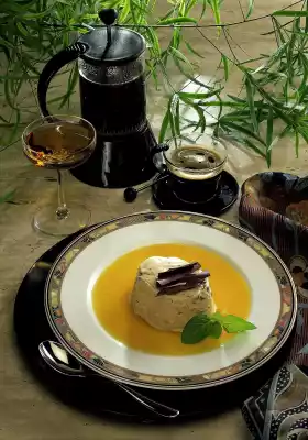 Remove the bowl and stir until cold. Whip the whipped cream until stiff, add cardamom and 2 tablespoons of chocolate shavings and fold into the mocha cream. Divide the mixture into 4 moulds (125 ml capacity) and place in the freezer for at least 4-5 hours.