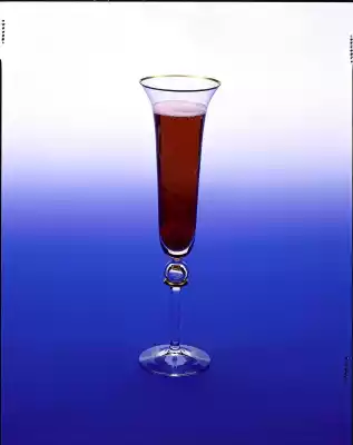 Put the coctail cherries in a tall champagne glass. Mix the red orange and the lime juice and pour over the cocktail cherries. Top up with the iced champagne.