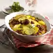 Stir in tomato paste, add stock and let it boil down for five minutes. Fold in aubergine and parsley, season to taste again. Divide dough plate into four pieces. Fold them lightly over each other and place them in four oil-coated moulds. Spread the prepared mixture over them. Grate cheese and sprinkle over the minced vegetable mixture. Bake in the preheated oven (electric cooker: 200 °C/ convection oven: 175 °C/ gas: level 3) for twelve minutes. Serve garnished with pepperoni