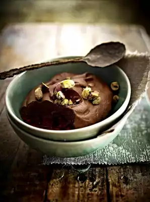 Remove the pistachios from the shell, chop roughly and sprinkle over the mousse.