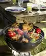 Clean and wash spring onions and cut them diagonally into rings. Drain mozzarella balls. Mix vinegar and lemon juice, season with salt, pepper and sugar. Whip the oil into it. Mix all ingredients together. Garnish with basil