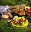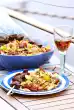 Boil eggs in sufficient boiling water for 8-10 minutes. Quench cold, peel and cut into slices. Peel onion and cut into fine rings. Wash and halve the tomatoes. Drain the corn on the veal and cut in half lengthwise. Clean salad, cut into bite-sized pieces, wash and spin dry.