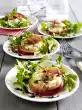 Drain the mozzarella balls and roll in parsley. Halve the avocados. Remove the core and remove the flesh from the skin. Cut the flesh into slices. Mix lettuce, avocados, peppers, tomatoes, cucumber and vinaigrette and arrange on plates.