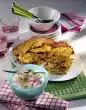 Peel, wash and coarsely grate the potatoes and mix with egg, flour and salt. Fry approx. 8 flat buffers from the potato mixture in hot clarified butter until golden brown on both sides. Wash and dry the tomatoes and cut out the stalks. Cut the tomatoes into slices.