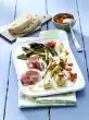 Halve the bread pieces once crosswise and spread with the herb butter. Put the bread in a hot pan with the cut surface facing down. Roast at medium heat until golden brown. Turn the bread over and fry it briefly from the other side, take it out. Put 1 tablespoon of oil into the hot pan and fry the mozzarella parcels for 2-3 minutes