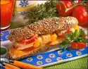 Cut tomatoes and mozzarella into slices. Cover the bread with them. Season with salt and pepper. Bake in the preheated oven on the highest setting or under the hot grill for 3-4 minutes. Sprinkle basil leaves over it