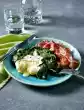 In the meantime, clean and wash the cabbage, dab dry and slice finely. Peel and grate the carrots. Clean and wash spring onions and cut into fine rings. Clean, wash and spin dry the salad.