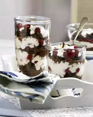 Drain the cherries. Crumble pumpernickel with your hands, mix with 25 g sugar and sprinkle with kirsch. Finely chop the chocolate and mix in. Stir quark, 100 g sugar and milk until smooth. Put pumpernickel, cherries and cream into 4 glasses (200-250 ml content) one after the other. Continue until everything is used up. Chill for 1-2 hours