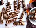 Roll out the remaining disc of dough a little. Cut out half moons and 3 rings. Put rings around the openings, moons on the lid. Whisk the egg yolk and 2 tbsp. milk and brush the dough with it