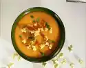 Shortly before serving, melt under the hot grill until a golden brown, crusty rim is formed. Parmesan chips can then be easily removed from the baking parchment. Fry the remaining mushrooms in 1 tablespoon of melted butter for 3-5 minutes, add spring onions and toss everything once. Season with salt and pepper. Puree the soup with the chopping stick. Stir in cream cheese and mushroom and spring onion mixture. Season to taste with salt and pepper. Serve with parmesan chips