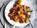 Heat 2 tablespoons of oil in a frying pan. Sauté the mushrooms in it. Season with salt and remove. Heat 1 tablespoon of oil in the frying fat. Sauté carrot, pak choi and garlic in it. Add sprouts. Deglaze with hoisin and 1 tbsp. soy sauce.