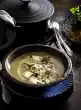 Clean and wash the leek and peppers. Cut the leek into thick rings and the paprika into cubes. Clean the mushrooms and, depending on their size, possibly halve them. Pre-cook leek and paprika in 1/4 litre boiling water with little salt for about 5 minutes. In the meantime heat oil in a pan and fry the mushrooms until golden brown. Pour the leek and peppers onto a sieve and collect the vegetable water.