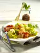 Fry the prawns in hot oil while turning for about 2 minutes. Season and take out. Fry the garlic and onion briefly in the frying fat. Fry the mushrooms for about 5 minutes, turning them and seasoning. Add prawns and heat briefly. Serve with garlic dip. Delicious with baguette