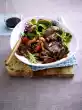Heat 2 tablespoons of oil in a large pan. Sauté the velvet caps in it for 3-4 minutes. Season with salt and pepper and remove. Heat 1 tablespoon of oil in the frying fat. Sauté the meat for about 4 minutes and season with salt and pepper. Add onions and carrot and fry for approx. 3 minutes. Dust everything with flour and sauté briefly. Deglaze with wine, 1/4 litre water and cream. Bring to the boil, stir in broth and thyme and simmer for about 5 minutes. Fold in the mushrooms and heat them up.