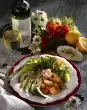 Stir in the egg cubes, bacon and cress. Arrange salad and mushrooms on four plates and pour the sauce over them.
