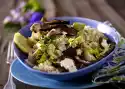 Deglaze with the porcini mushrooms in the soaking water. Add white wine and cream and braise covered for 10-15 minutes. Heat the remaining fat in a pan and fry the dumpling slices in it. Stir the sauce thickener into the ragout and bring to the boil again briefly. Season to taste with salt, pepper and some instant broth to taste. Arrange the ragout with the dumpling slices on plates. Serve garnished with chives and marjoram