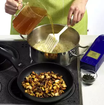 smoked duck breast: cut the duck breasts crosswise on the fat side and season with salt and pepper Put the smoked duck breast and tea in a wok. Place the ducks on the appropriate grid. Cover the wok and close it well with damp kitchen paper. Heat the wok on the hotplate until smoke is formed. Then turn down a little and smoke for about 25 minutes. Then let the ducks rest for approx. 8 minutes. Smoking is best outside!