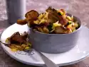 Heat 2 tablespoons of oil and butter in the frying fat. Fry the mushrooms in it in portions, turning them golden brown, until all the liquid has evaporated. Finally fry the shallots briefly. Season with salt and pepper.