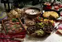 Season with salt and pepper. Mix the mushrooms and artichoke hearts with the marinade. Covered and leave to stand overnight. Arrange on a plate with the tomatoes and leek sticks.