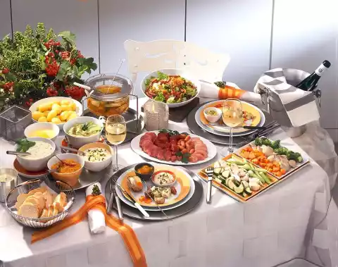 Stir salad cream, yoghurt, mustard and approx. 2 tablespoons of cucumber stock until smooth. Remove some of the herbs, egg and cucumber cubes for sprinkling. Stir the rest into the sauce. Season to taste with salt and pepper, place in a small bowl and sprinkle with the remaining sliced ingredients
