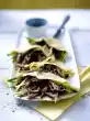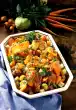 Spread the vegetables on the fat pan. Season with salt and pepper. Mix mustard and honey, pluck tarragon leaves. Spread the honey-mustard mixture on the chicken and sprinkle the leaves on top. Cook chicken and vegetables for another 30 minutes.