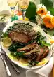 Cut the roast open and arrange with the vegetables, garnish with the remaining thyme. Serve with mashed potatoes and chives rolls.