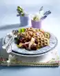 Wash the nectarines and pat dry. Halve and stone. Cut nectarines into slices. Stir the dessert cream until smooth and spread it over the pieces. Cover with nectarines and dust with icing sugar. Decorate with lemon balm