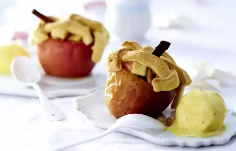 manufacturer) bake for about 35 minutes. Arrange apples on plates. Vanilla ice cream tastes good with it.