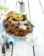 Clean, wash and pluck the salad into bite-sized pieces. Pour white beans onto a sieve, rinse and drain. Also drain artichokes and olives. Clean and wash the green beans. Cook in boiling salted water for about 10 minutes, pour into a sieve and rinse with cold water