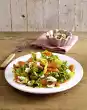 Clean the salad, wash it, cut it in half and cut out the stalk. Cut salad into bite-sized pieces. Drain mozzarella. Clean, wash, halve and slice the radishes