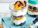 For the cream, mix yoghurt, sour cream, lemon peel and juice with the whisks of the mixer. Sprinkle in 2 sachets of "Gelatine fix" and stir in for approx. 1 minute. Stir in 80 g sugar. Pour the yoghurt mixture onto the crumb base and smooth it down. Chill for about 30 minutes.