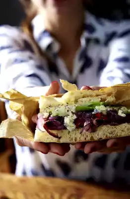 Place the topsides on top, press the bread lightly together and eat immediately.