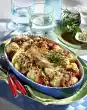 Pour the ham, drained pasta and broccoli into a greased baking tray (approx. 24 x 35 cm) or large casserole dish. Pour egg milk over it. Sprinkle breadcrumbs over it. Add 50 g fat in flakes. Bake in the preheated oven (electric cooker: 200 °C/ gas: level 3) for 35-40 minutes