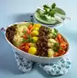Clean and wash broccoli, divide into florets and cook in a little salted water for about 5 minutes. Cut the ham into cubes. Crumble toast. Whisk eggs and milk. Season with salt, pepper and nutmeg