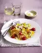 Whisk eggs, milk and parsley. Season with salt and pepper and pour over the pasta mixture. Let stand in the preheated oven (electric cooker: 200 °C/ circulating air: 175 °C/ gas: see manufacturer) for 15-20 minutes.