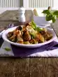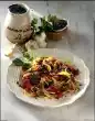 Arrange sugar snaps, noodles, medallions and sauce on plates. Decorate with chervil.
