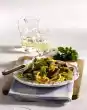 Cook the pasta in boiling salted water according to the instructions on the packet. Peel and chop the onion. Clean and wash the broccoli and cut into florets. Cut the florets into slices. Heat 1 tablespoon of oil in a saucepan.