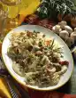 Cook the pasta in boiling salted water for about 15 minutes. In the meantime peel onion and garlic. Chop onion and garlic finely. Wash the meat, dab dry and cut into cubes. Season with salt and pepper.