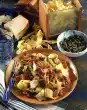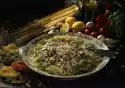 Mix flour, semolina and salt in a bowl. Make a depression in the middle and add oil and 4-5 tablespoons of lukewarm water. Knead everything together a little. Add the egg and egg yolk, fold in and knead the dough vigorously with your hands on a lightly floured work surface. Roll out the dough very thinly with a rolling pin and cut it into 1/2 cm wide strips, or turn it through a pasta machine. Cook the noodles in plenty of boiling salted water for 2-4 minutes