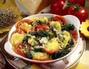 Drain the pasta and let it drain thoroughly. Put the pasta back into the pot, mix with pesto and arrange on preheated plates. Sprinkle with remaining pine nuts and parmesan and garnish with basil.