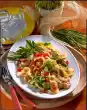 Add onion, garlic, rosemary, dried tomatoes and fennel and steam briefly. Add tomato paste, deglaze with canned tomatoes. Let the sauce thicken a little. Cook the pasta in boiling salted water for about 7 minutes.