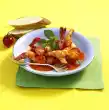 Clean, wash and chop the tomatoes. Finely chop the onion half. Rinse cutlet meat cold, dab dry and cut into strips. Fry the onion cubes and escalope strips in hot oil. Add tomatoes.
