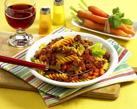 Peel and finely chop the onion and carrots. Clean and wash the celery, put celery green aside for garnishing. Cut celery stalks into slices. Heat the oil in a pan and fry the minced meat until crumbly.