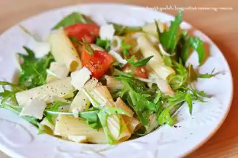 While the pasta is cooking, prepare the vinaigrette by crushing a clove of garlic, squeezing the juice of one lemon and mixing it well with 4 tablespoons of oil, salt and pepper. When the pasta is drained, cuddle it in the pot and pour half of the vinaigrette over it - so that it doesn't stick and stays slippery.
