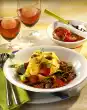 Add chanterelles, spring onions and thyme and fry briefly. In the meantime, put the noodles in boiling salted water, bring to the boil and cook for 8-10 minutes. Put the fried minced meat back into the pan, mix, season with salt and pepper and deglaze with stock and cream, bring to the boil.