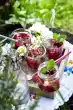 Wash the strawberries, cut off the green stalk. Halve or quarter the strawberries depending on their size.