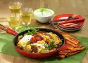 Season mushrooms and spring onions with salt and pepper. Dust with flour and sauté briefly. Deglaze with wine and 1/2 l water, bring to the boil. Stir in broth and simmer for about 3 minutes. Stir in cheese and melt in. Season sauce with salt and pepper