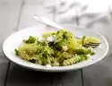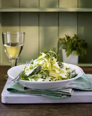 Bereiten Sie die Nudeln in kochendem Wasser nach Packungsanweisung vor. Die letzten 4 Minuten des Kochens den Spargel hinzufügen und dann abtropfen lassen. Den Käse, 2-4 Esslöffel Zitronensaft mit 100 ml Kochwasser mischen und verrühren. Mit Salz und Pfeffer würzen.