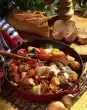 Peel and chop the onion. Heat 2 tablespoons of oil in a saucepan. Fry the onion in it. Add sauerkraut and braise a little. Deglaze with wine and apple juice. Add bay leaf, juniper berries and peppercorns.